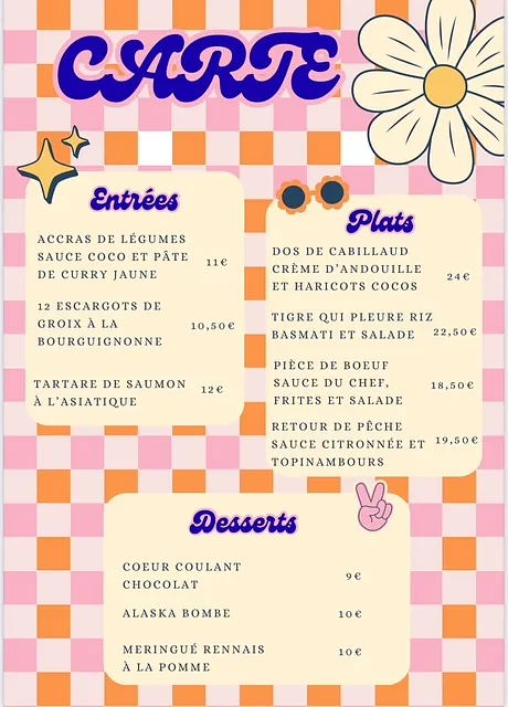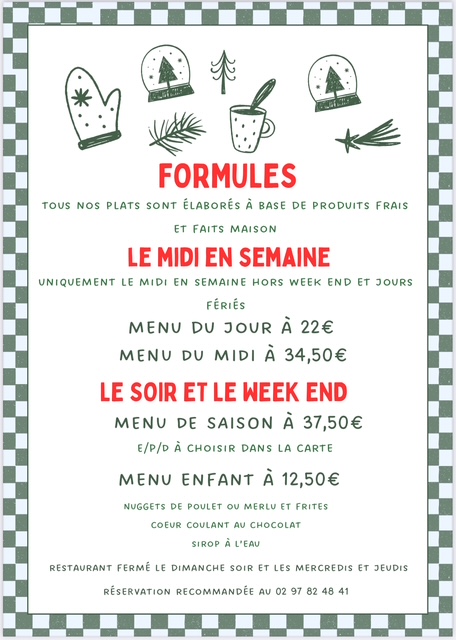 Notre Chef et son équipe vous proposeront 3 entrées, 4 plats et 3 desserts, qui évolueront, au rythme des saisons et des produits frais disponibles.